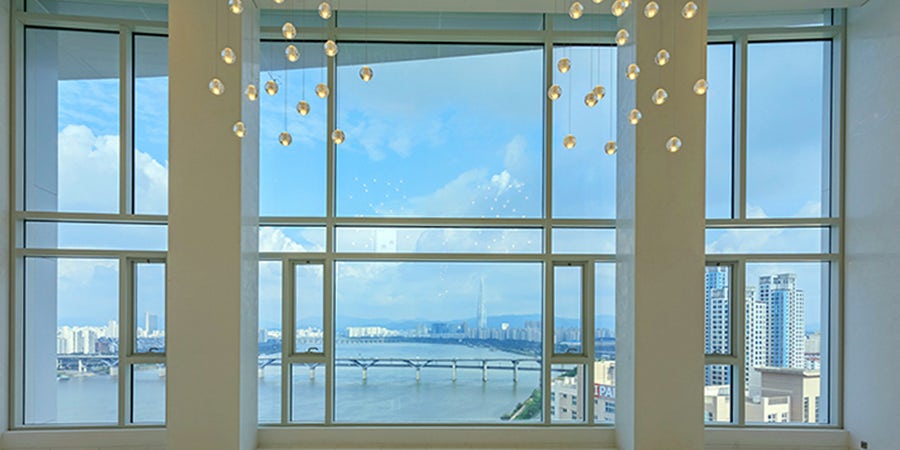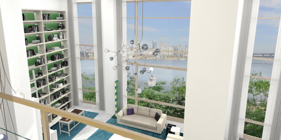 더펜트하우스는 한 층에 한 가구만 있고 세대 마다 개인 엘레베이터를 이용할 수 있어 완벽한 프라이버시를 보장합니다. 또 차량은 세대 당 5대까지 가능한데요. 가장 큰 메리트는 영동대교 남단에 위치해 있어 시원한 한강 조망권을 가지고 있다는 점입니다.