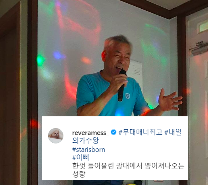 가족과 함께한 일상에서도 귀여운 동네 언니같은 분위기가 느껴졌습니다. 아버지 사진을 올려 해쉬태그 올린 글귀들에도 유머러스하고 친숙함이 묻어나지요.